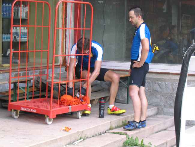 espresso nimmt am Fernpass auf einer improvisierten Massagebank platz. Sein geschundener Rücken bedarf der schmerzhaften, aber auch helfenden Massagekünste von Rosti. *smile*